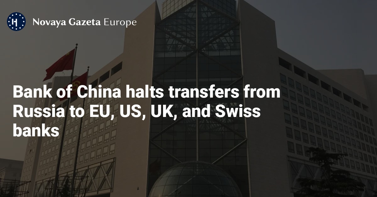 中国銀行、ロシアからEU、英国、スイスの銀行への送金を停止:6月18日