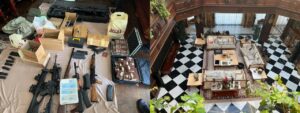 プリゴジン宅邸の家宅捜査が報道され、武器、弾薬、変装用のカツラ、現金が描写されています。