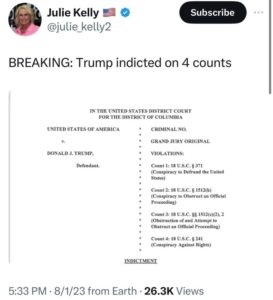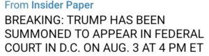 -権利に対する共謀C. 速報: トランプ大統領は8月3日午後4時(東部標準時)にワシントンDCの連邦裁判所に出廷するよう命じられた。