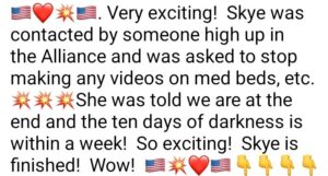あと少しだ!B. とても興奮する!スカイはアリアンスのお偉いさんから連絡を受け、メドベッドなどのビデオを作るのをやめるように言われました。