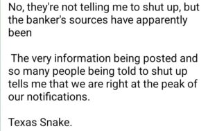 まさに情報が投稿され、多くの人々が黙れと言われていることは、私たちがまさに通知のピークにいることを物語っている。テキサス・スネーク