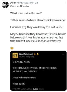 そして、テザー社がビットコインよりも多くの金を保有しているという情報もあります。