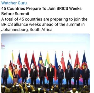 そして、BRICS諸国に加入した国がすでに40〜45あり、GPDは世界の85%となれば、G7は崩壊するでしょう。