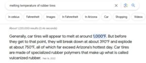 A. 一般的に、車のタイヤは華氏1000度前後で溶けるように見える。(彼が言いたいのはそのぐらい熱くなるのは”指向性エネルギー兵器”を使わないとならないと言いたのです。)