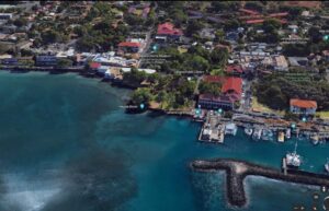 B. 三つ目が火事の前のラハイナのショッピングとレストラン街の町の写真です。そしてその横が火事後の写真です。