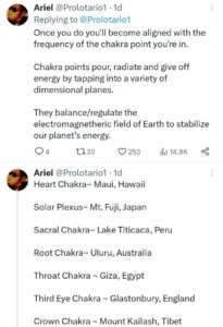 チャクラポイントは、さまざまな次元の平面を利用することで、エネルギーを注ぎ、放射し、放出している。チャクラは地球の電磁場のバランスをとり、地球のエネルギーを安定させます。