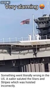 “非常に憂慮すべきこと 米国では文字通り何かが間違っていた。 ある船員が、掲揚が間違っていた星条旗に敬礼した。”