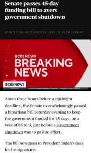 10月1日になる3時間前に米国国会では予算停止が45日間延長になりました。