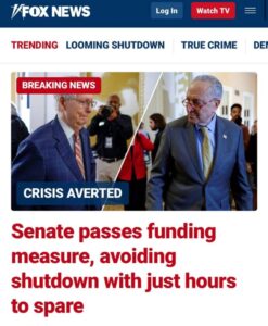 午前零時の期限まであと3時間というところで、上院は土曜日の夕方、政府閉鎖が発動されるまでの45日間、政府資金を維持するための超党派法案を88対9の圧倒的多数で可決した。