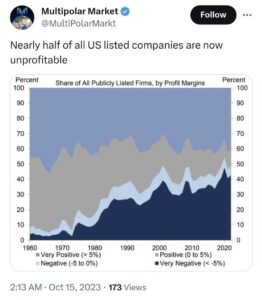現在、米国の上場企業のほぼ半数が赤字となっている。