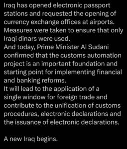 B. イラクは電子パスポート・ステーションを開設し、空港での両替所開設を要請している。イラク・ディナールのみが使用されるよう措置がとられました。