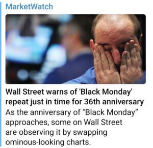 ウォール街、36周年に合わせて「ブラックマンデー」が繰り返されると警告
