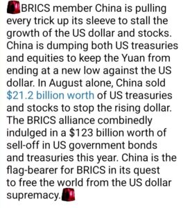 C.   BRICSのメンバーである中国は、米ドルと株式の成長を阻止するため、あらゆる手を使っています。