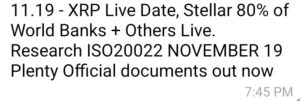 B. 11月19日 – XRP ライブ アップデート、Stellar 世界銀行の 80% とその他がライブ。