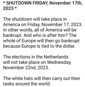 アメリカでは2023年11月17日金曜日に閉鎖が行われます。 言い換えれば、アメリカ全土が破産することになります。