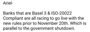 *解説:世界の中央銀行は、バーゼル3およびISO20022に準拠している銀行は、11月20日より前に新規則に対応していると言います。