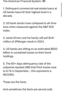 1. 米銀の商業用不動産ローンの延滞が過去10年間で最高水準に達しました。