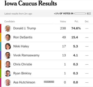 また、トランプ大統領は1月15日にアイオワ集会でスピーチして、共和党内での大統領支持率が74.6%という圧倒的な支持を得ていました。