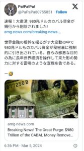 3月4日の速報!大粛清: 980兆ドルのCABAL資金が銀行から削除されました! – アメリカン メディア グループ (amg-news.com)