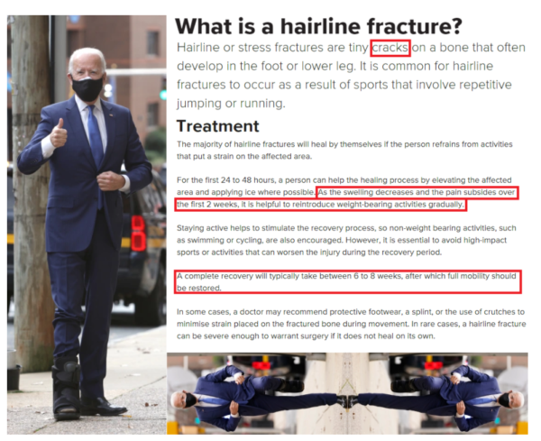 クローン/ダブルのジョー・バイデンは、足を骨折していないことをはっきりと示していますが、骨折したとされる数日後です。