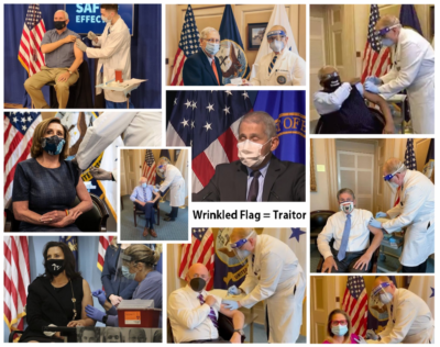私たちは、いくつかの有名な反逆者または小児性愛者への多数の生放送のワクチン注射(その多くは偽の注射にプロップ針を使用しているように見える)を見てきました。