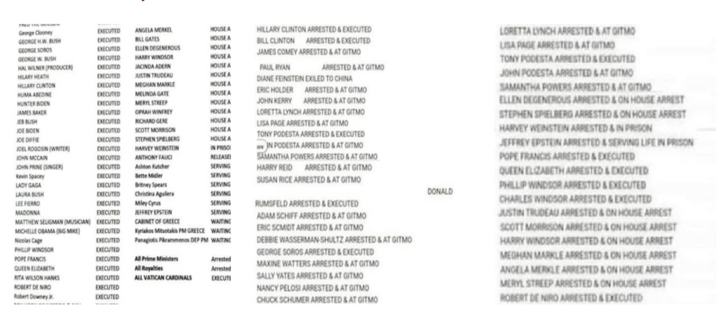 彼らは、現在自宅軟禁中、刑務所内、法廷待ち、GITMOで、またはすでに処刑されている人を特定しているようです。