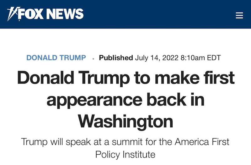 トランプ大統領が7月26日、America First Policy Instituteのサミットで基調講演をするため、DCにやってくる。