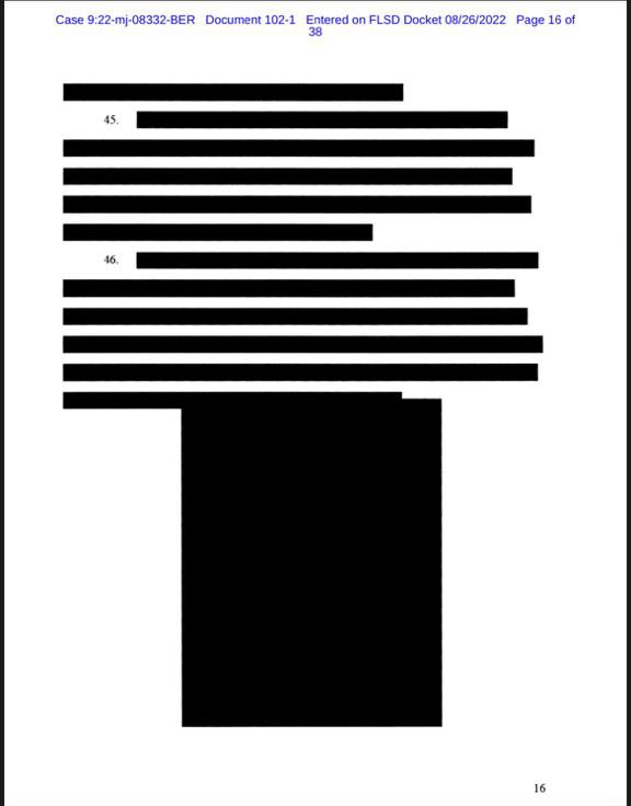 FBIのトランプ邸マー・ア・ラゴの家宅捜査の宣誓供述書は、あきれるほどの黒塗りだらけでした。