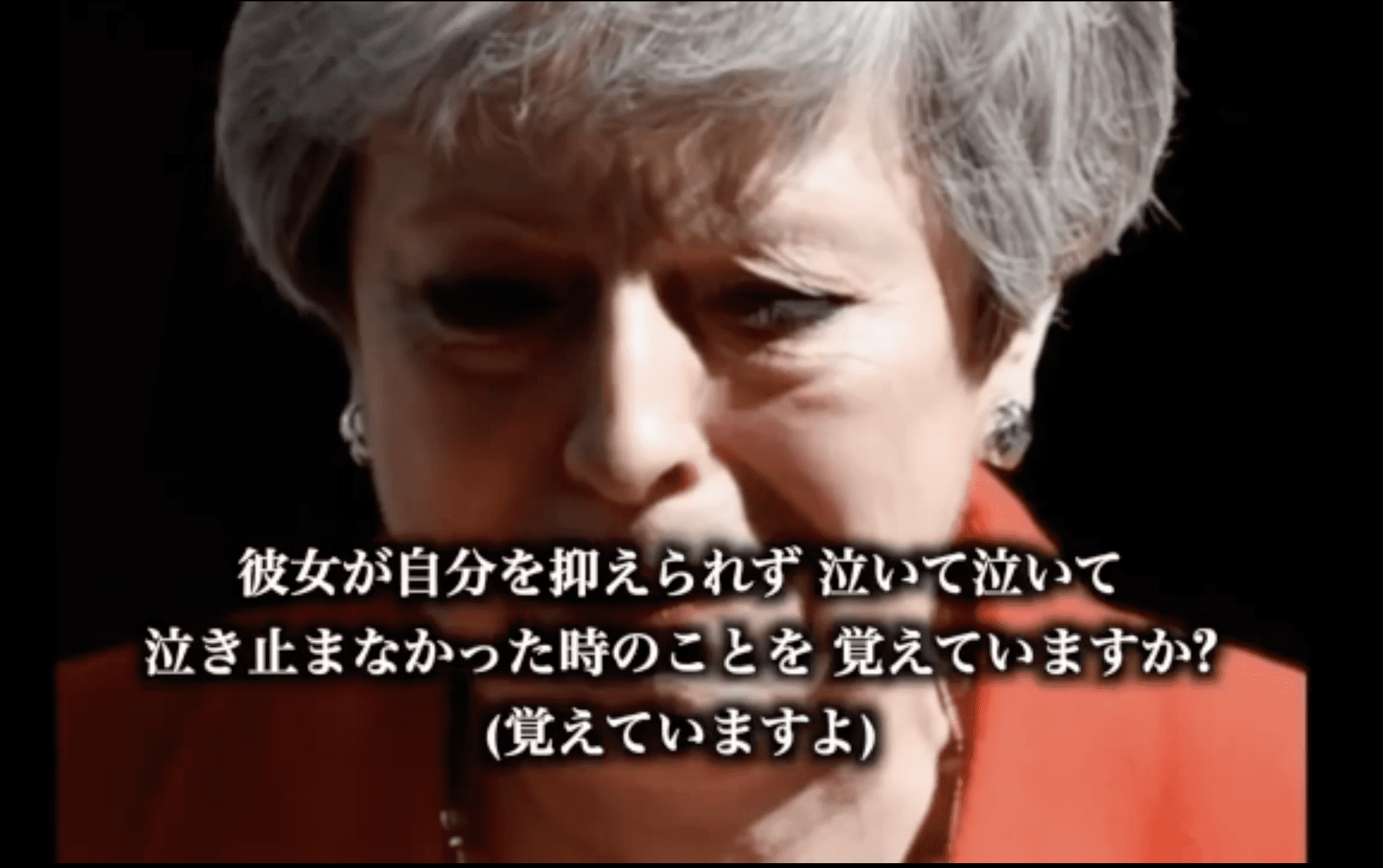 テリーザ・メイが辞任した時の話ですが、彼女は、赤ん坊のように泣きじゃくっていましたが、結局誰も彼女のことを好きではなく、仲間も彼女のことを好きではありませんでした。