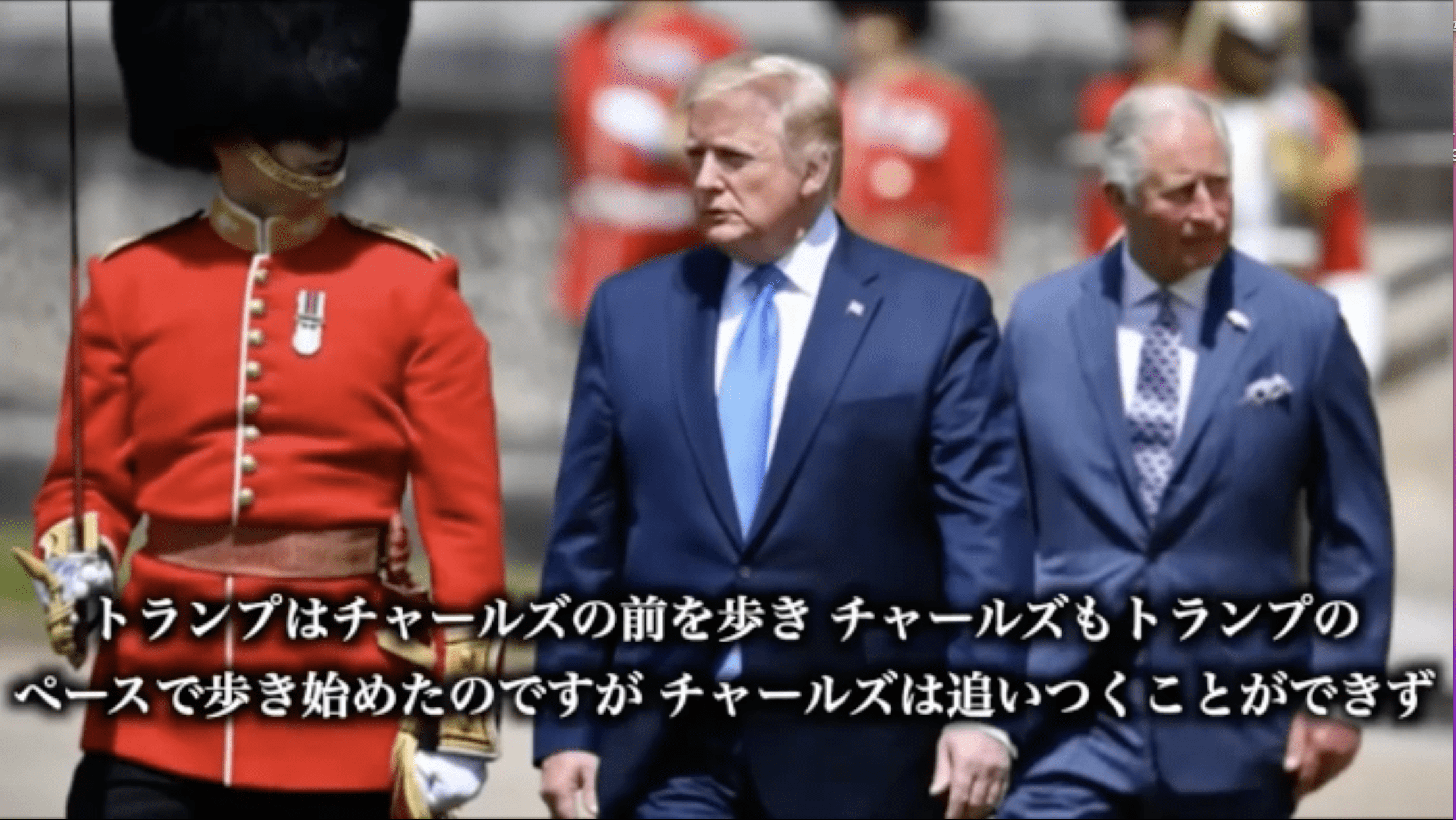 トランプはチャールズの前を歩きチャールズもトランプのペースで歩き始めたのですが、チャールズは追いつくことができず、トランプはチャールズの王室警備員のところまで歩いて行き、彼らと雑談をし、王室について質問したり王室の話をすることで彼らの動向を聞き出していました。