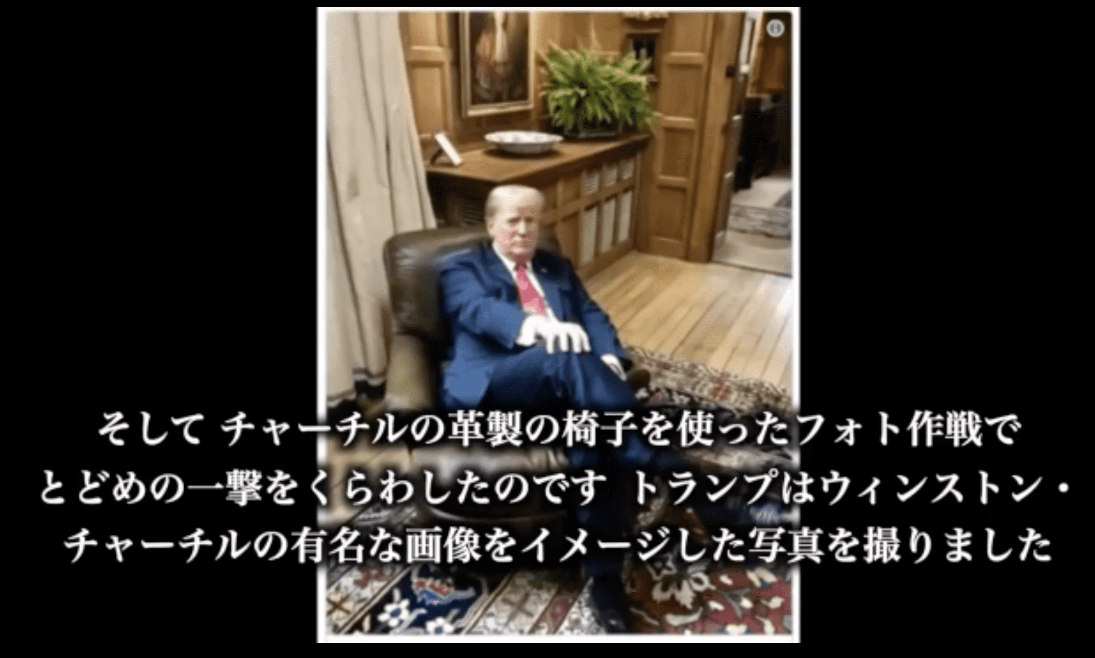 トランプはウィンストン・チャーチルの有名な画像をイメージした写真を撮りました。