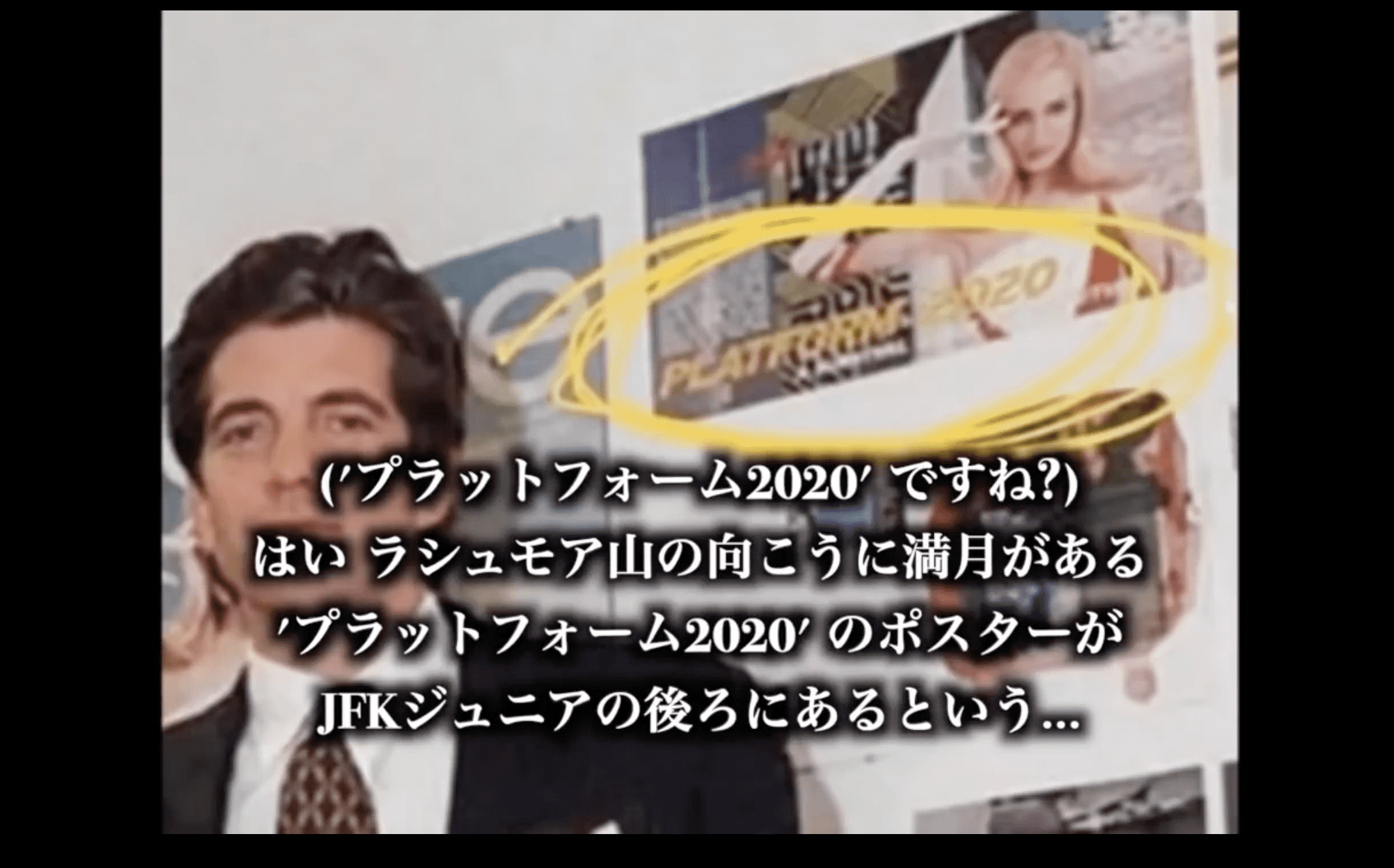 ‘プラットフォーム2020’のポスターが、JFKジュニアの後ろにあるという・・・