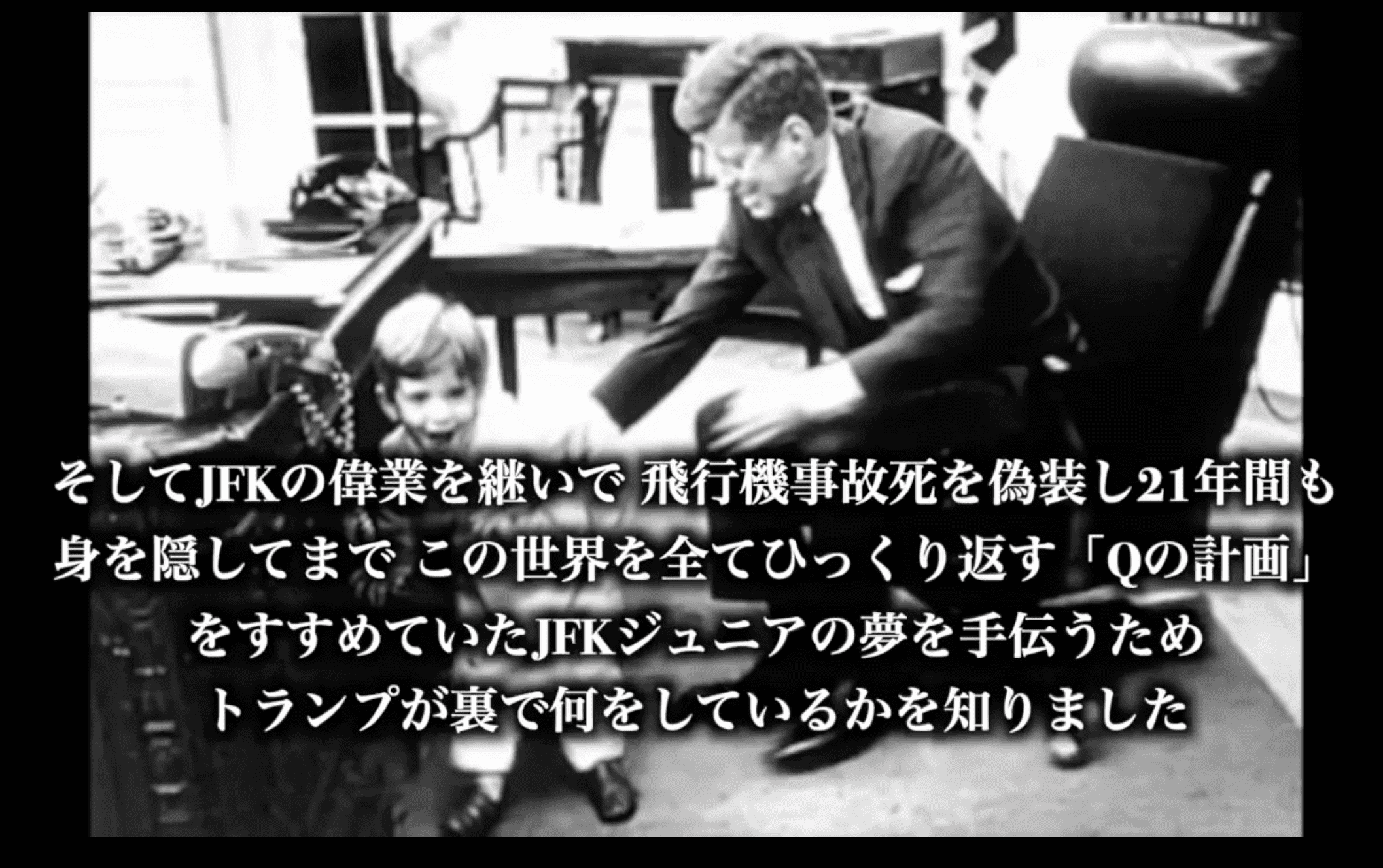そして、JFKの偉業を継いで、飛行機事故死を偽装し21年間も身を隠してまでこの世界を全てひっくり返す「Qの計画」をすすめていたJFKジュニアの夢を手伝うためトランプが裏で何をしているかを知りました。