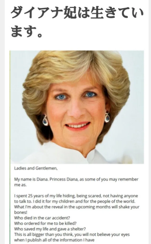 1997年に自動車事故で死去したとされるダイアナ妃からのメッセージです。