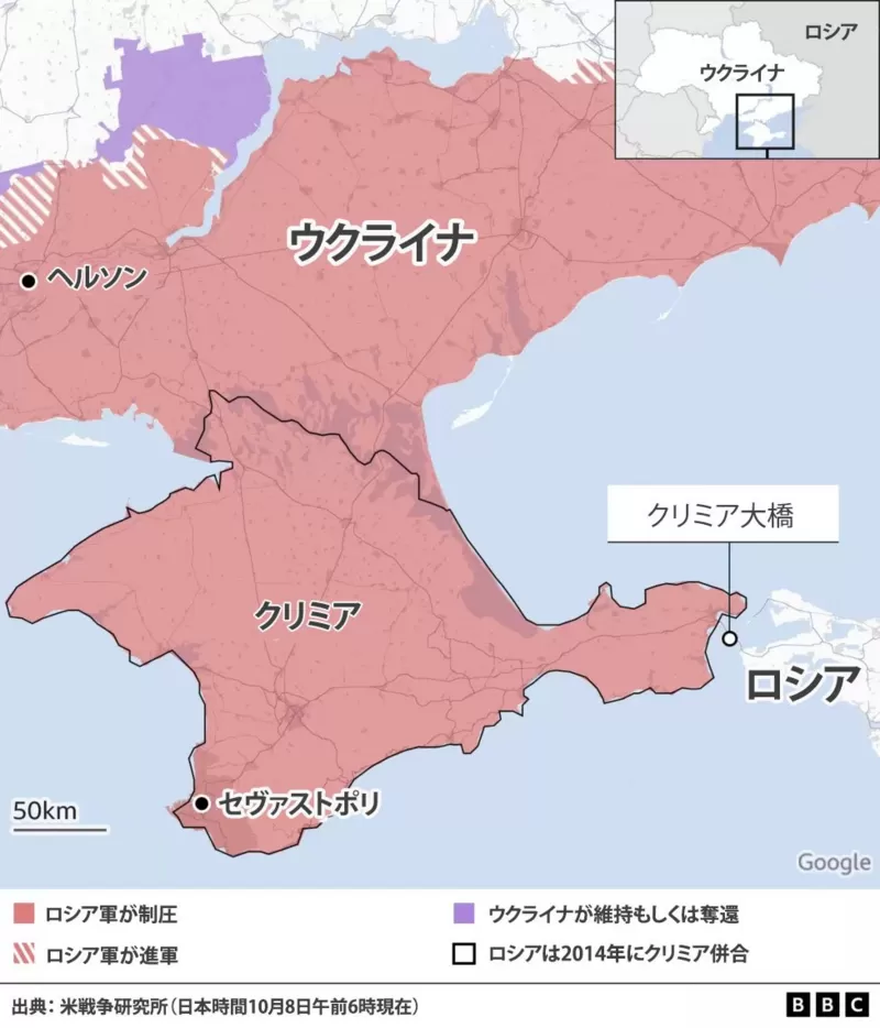 ウクライナでは、クリミア大橋が10月8日に何者かにより爆破された。