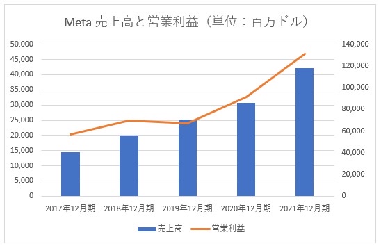 ※Meta Investor Relationsより筆者作成(営業利益の目盛りは右軸)