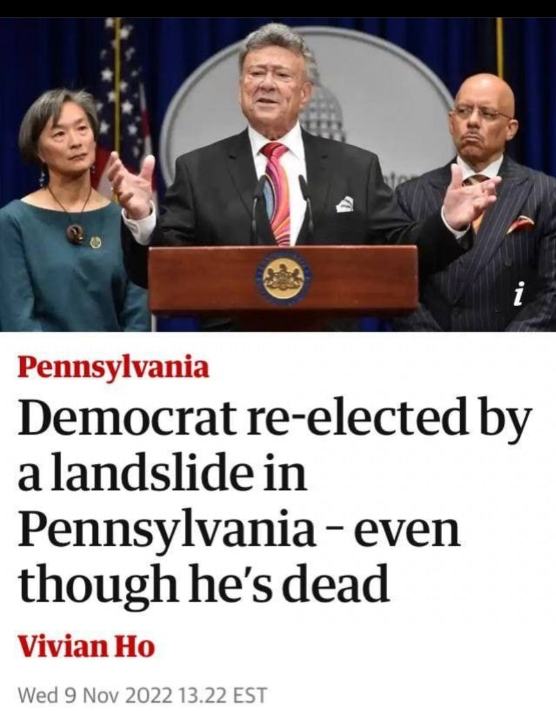 (筆者挿入: 民主党のペンシルバニア州下院議員アンソニー・デルーカが死亡したにもかかわらず、再選を勝ち取りました。。。。)