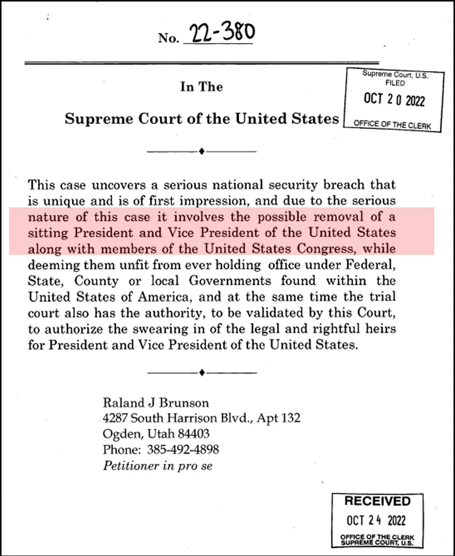 ブランソン兄弟4人はFRB政府を訴えている。https://www.thegatewaypundit.com/2022/12/will-scotus-right-thing-four-brunson-brothers-suing-biden-harris-pence-385-members-congress-refusing-investigate-whether-enemies-憲法-不正-2020/