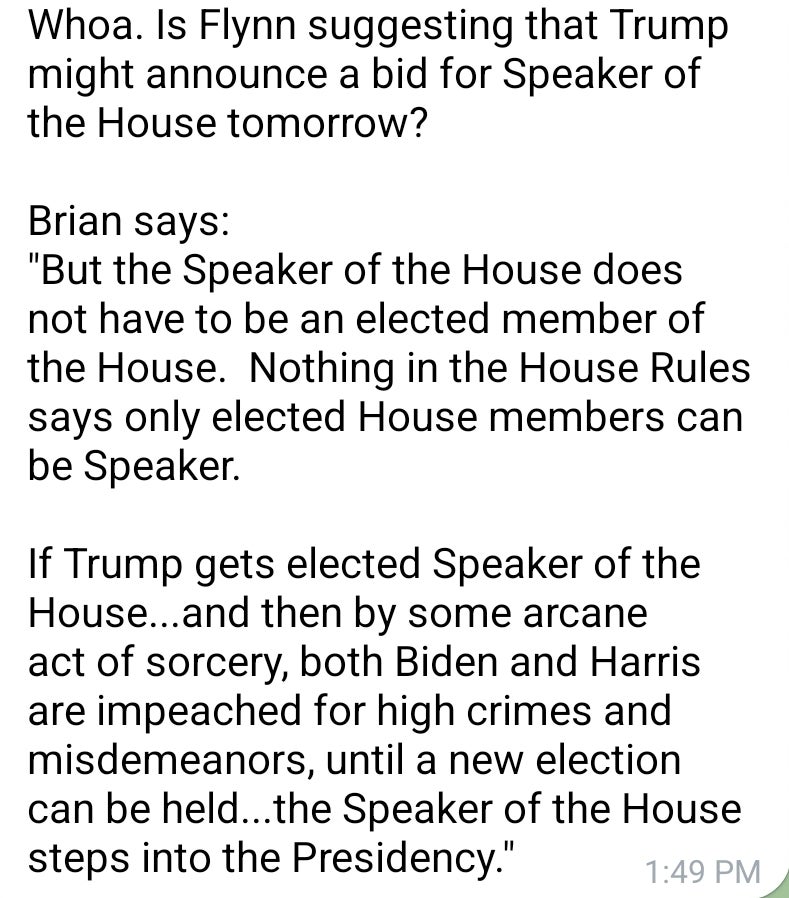トランプが下院議長に選出された場合、次の選挙が行われるまで、バイデンとハリスの両方が重大な犯罪と軽罪で弾劾されます。 下院議長が大統領職に就くことが出来ます。」