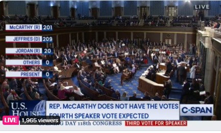 1月5日午前に再開された下院議長投票は7回目を行った。マッカーシー議員は再び負けたのである。