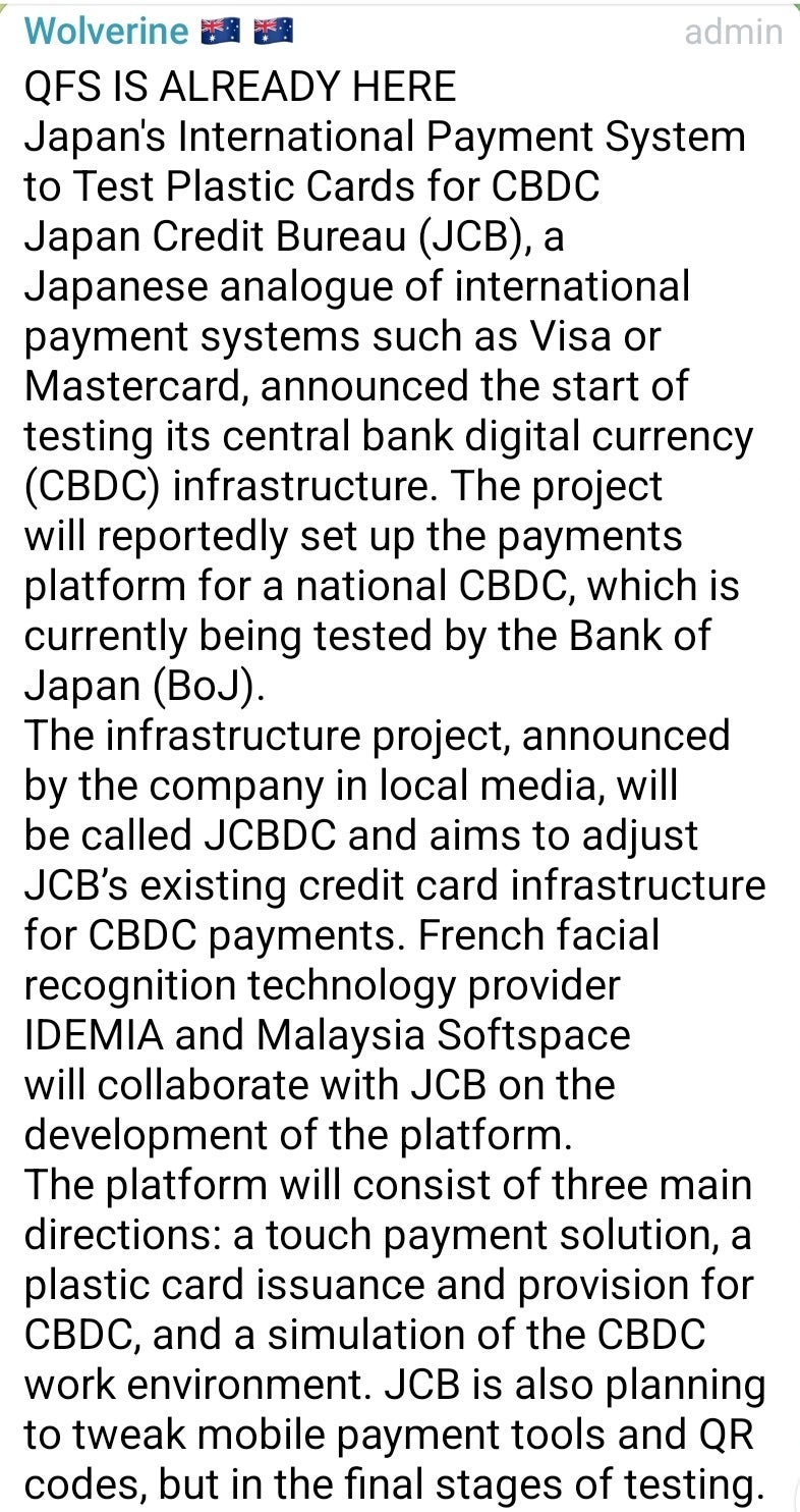 VisaやMasterCardなどの国際決済システムの日本のアナログである日本信用情報機関(JCB)は、中央銀行デジタル通貨 (CBDC)インフラストラクチャのテストの開始を発表しました。