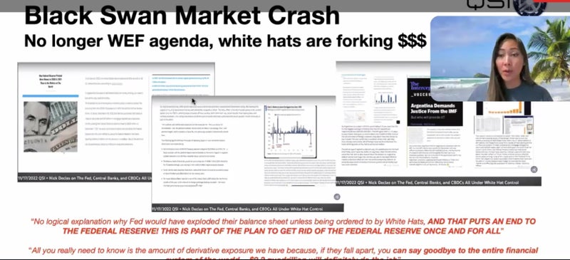 4. エミリーさんは、ホワイトハットが中央銀行、連邦準備制度理事会、国際通貨基金、世界経済フォーラム、世界銀行、腐敗した政府、企業、慈善団体、そしてディープ ステート (カバール) が過去に支配していた。という公的証拠を持っているそうです。