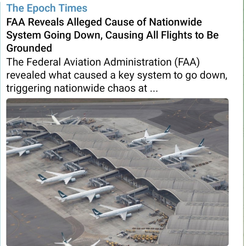 表向き:FAA は、全国的なシステムがダウンし、すべてのフライトが運航停止になった原因の疑いを明らかにしました。
