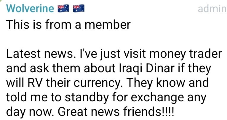 イラクは現在、新レートでの販売を開始しています。開始されました皆さんに神の祝福がありますように。みんなを祝福する時だメンバーからのコメントです。