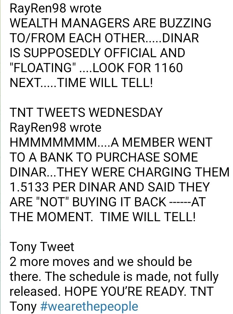 ウェルスマネージャーがお互いにブンブン言い合う。ディナールは正式なもので、”浮遊 “していると思われる。次は1160に注目。時間が解決してくれるでしょう!