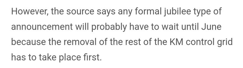 この情報筋によれば、カザリアンマフィアの支配網を取り除くことが先決であるため、正式なジュビリーのような発表はおそらく6月まで待たねばならないとのことです。