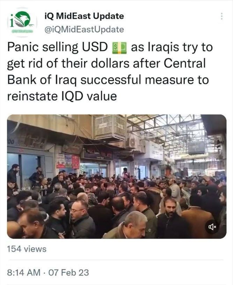 今までイラクの一般市民はディープステートにアメリカや他の豊かな国々と違って経済的に苦しめられて来たので先にイラクディナールが米ドルよりも上がる前にどんどん先に米ドルを売らせて、イラクディナールを替えさせているそうです。