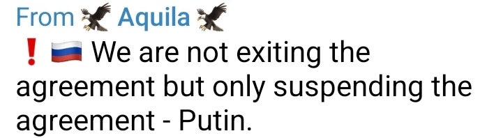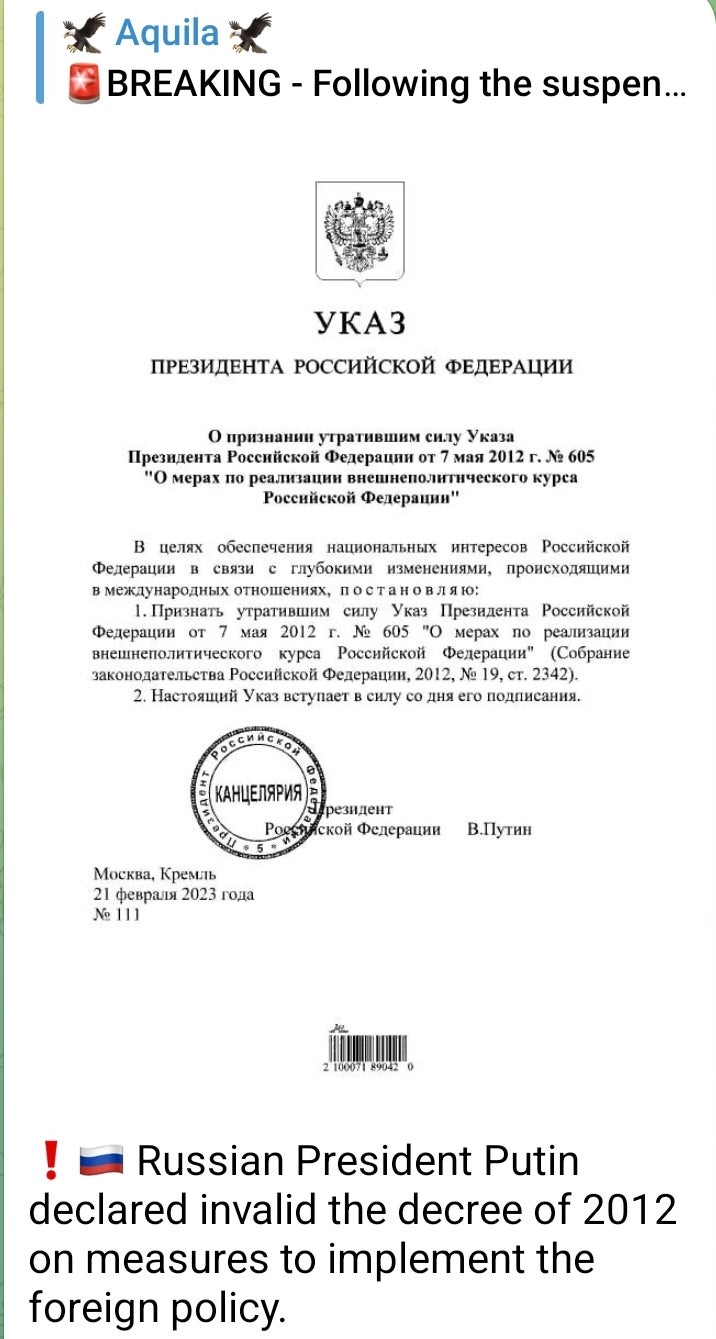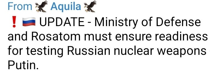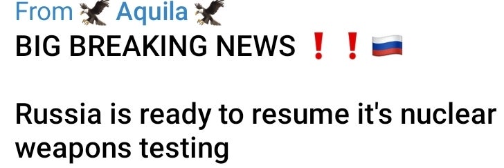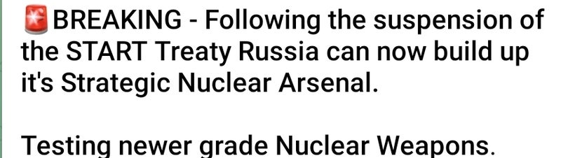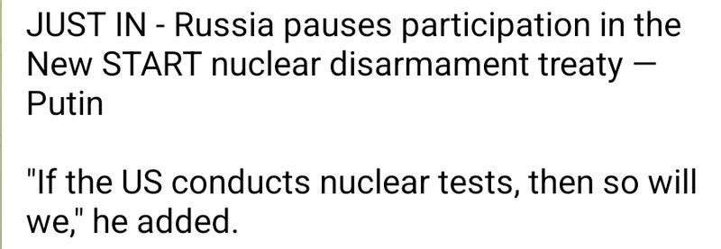 ロシアは、現在有効である核条約を一時停止し、核兵器倉庫の増強と実験の準備を行う。という内容でした。