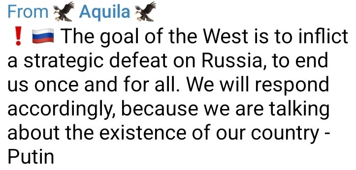 I.  西側の目標は、ロシアに戦略的敗北を与え、我々をきっぱりと終わらせることであります。私たちはそれに応じて対応します。なぜなら、私たちの国の存続に関わる話だからです。