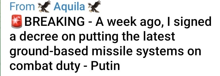 A.  速報! 1週間前、私は最新の地上配備型ミサイルシステムを 戦闘任務に就かせるという法令に署名した。